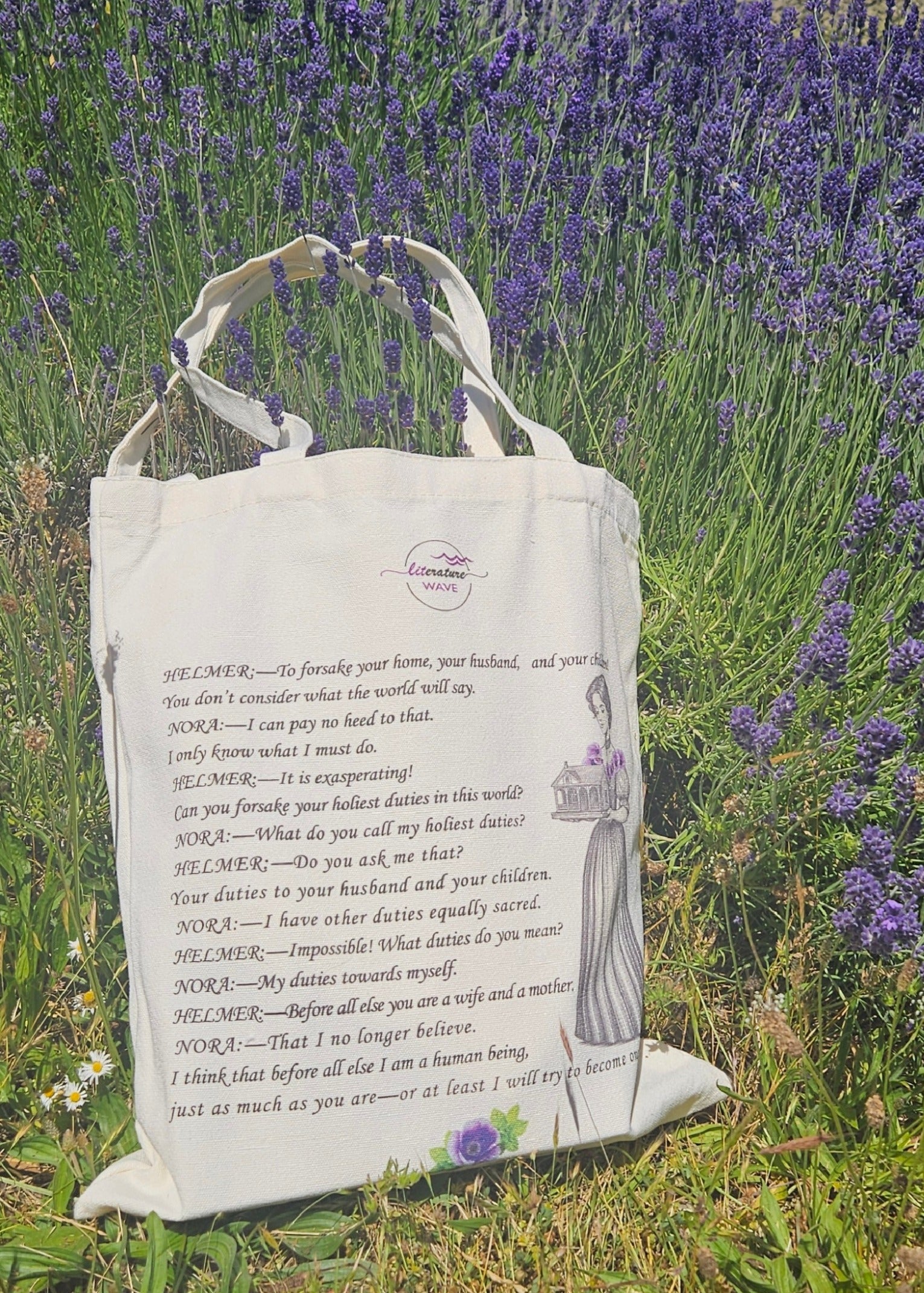 Crafted from durable cotton canvas, this eco-friendly tote bag is more than just a stylish accessory—it’s a tribute to timeless literature. Featuring beautifully printed excerpts from classic works, each bag invites you to carry the voices of the past into your everyday life.