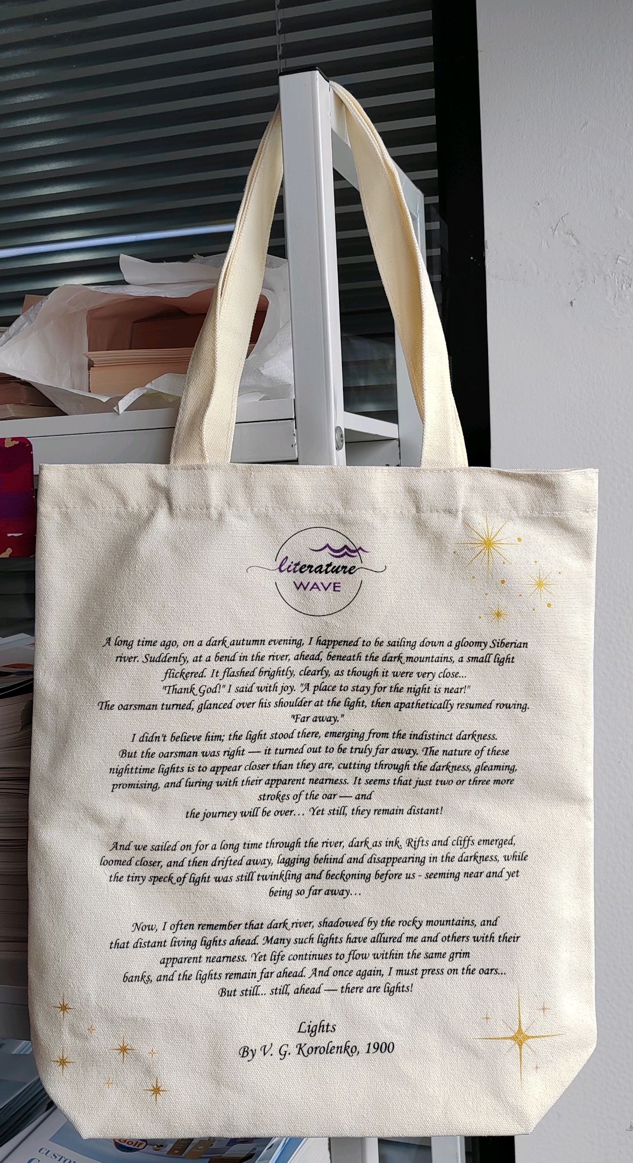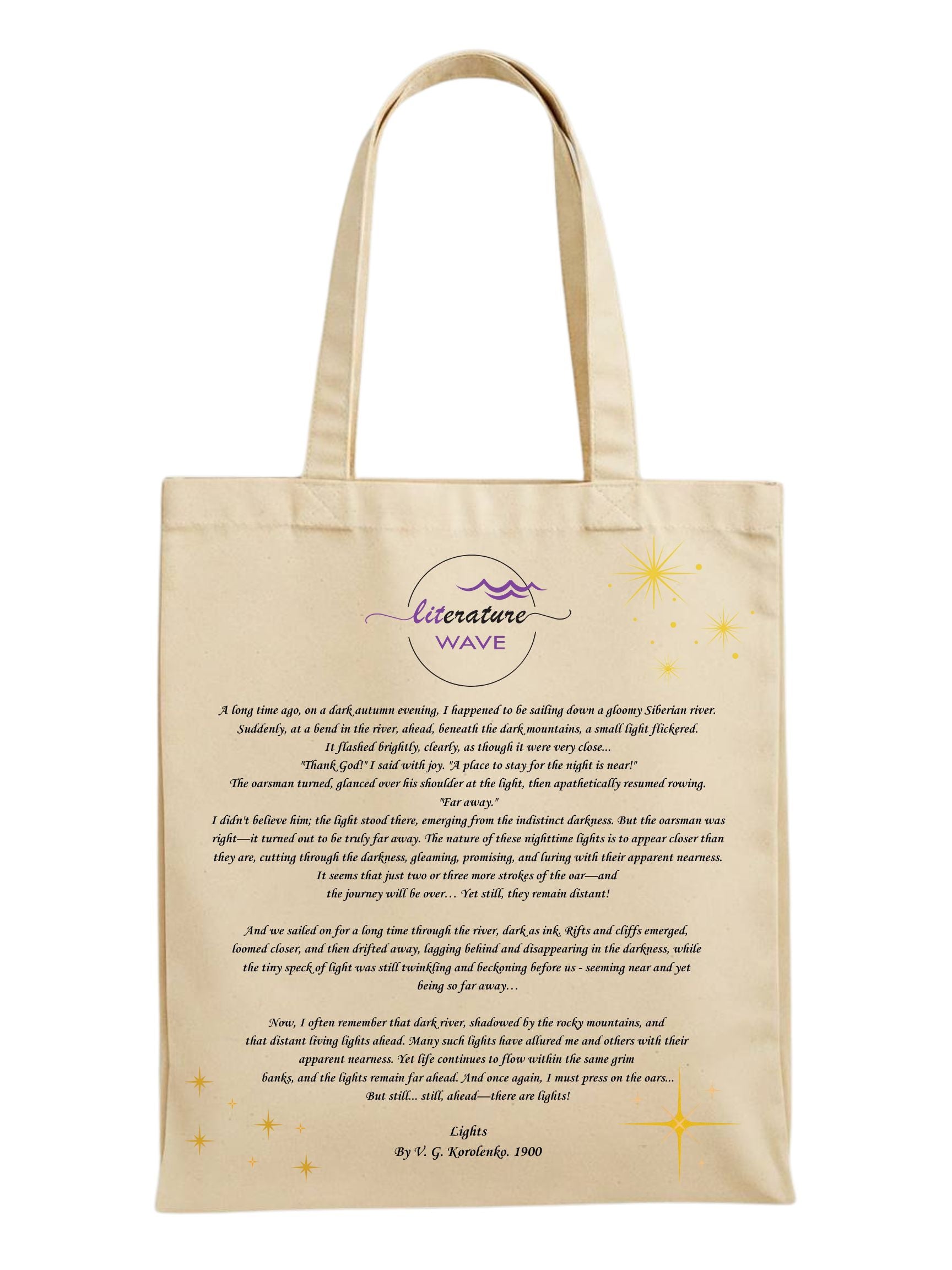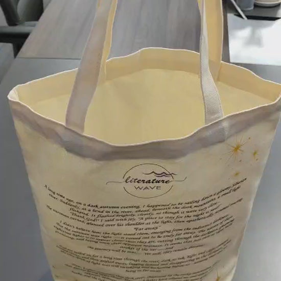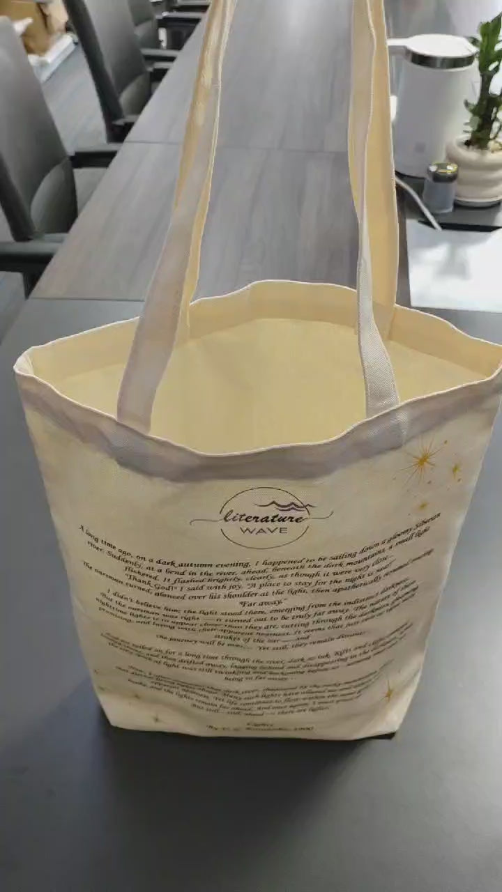 Crafted from durable cotton canvas, this eco-friendly tote bag is more than just a stylish accessory—it’s a tribute to timeless literature. Featuring beautifully printed excerpts from classic works, each bag invites you to carry the voices of the past into your everyday life.